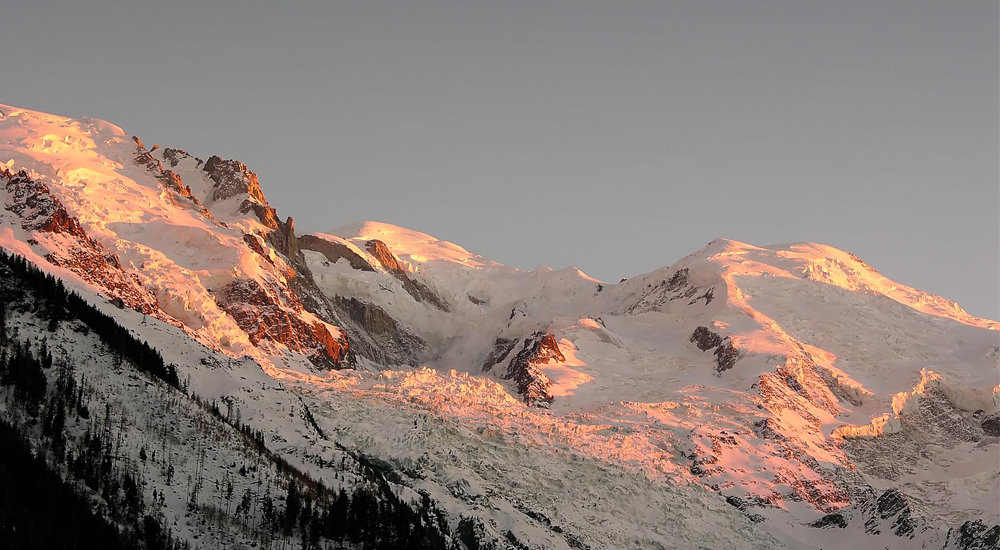 Facing the full imposing chain of the Chamonix Aiguilles you will see spectacular uninterrupted views from the Aiguille Verte to Mont Blanc.